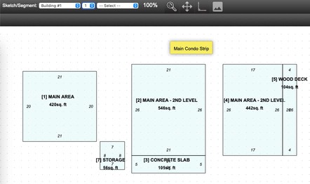 Separating parts of a sketch onto different pages focuses the editor on just one piece of the property at a time. This can be useful in situations where overlapping or complex segments would create too much clutter on a single page to be legible.